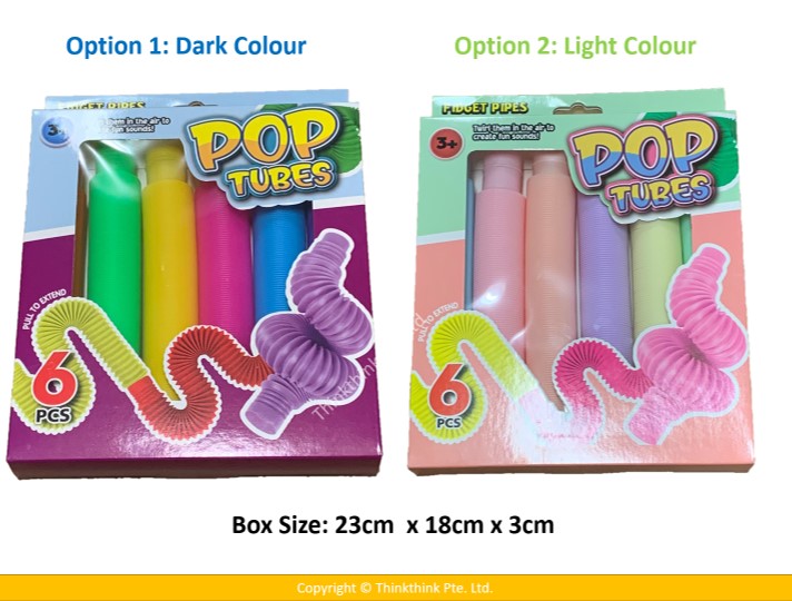 ? 6 PIECES COLOURFUL POP TUBES . SPECIFICATIONS: