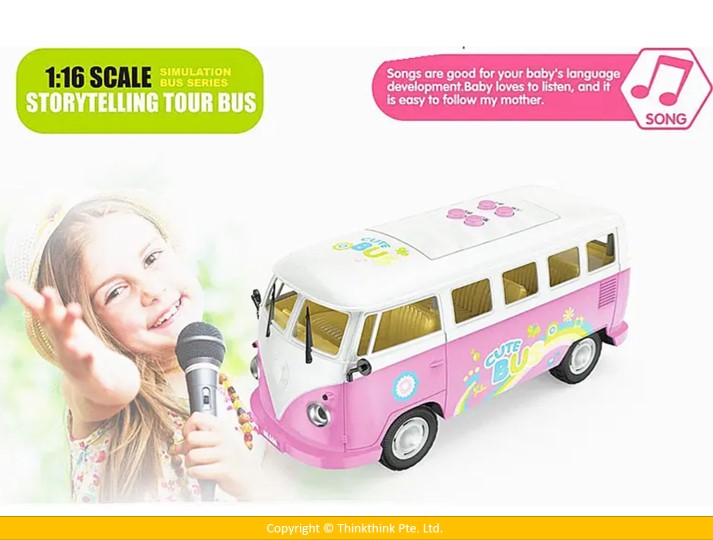 This is a 1:16 scale simulation tour bus series with stimulate bus styling, tell stories , sing songs, bus sounds, cool lights, fun and fun