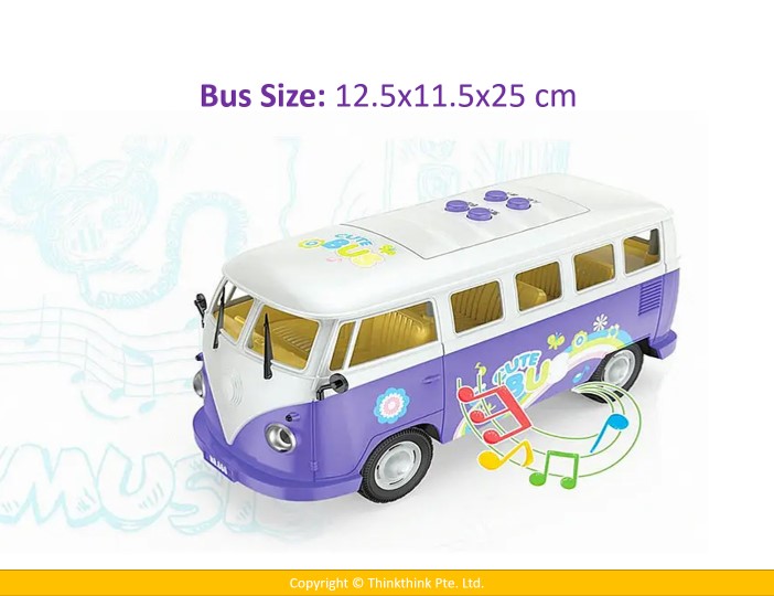 Function: Tell story, sing songs, Feature ‘Bich! Button, bus sounds and light