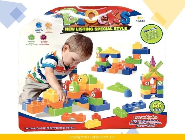 66 Pieces Big Building Blocks with One Transparent Bag for Children