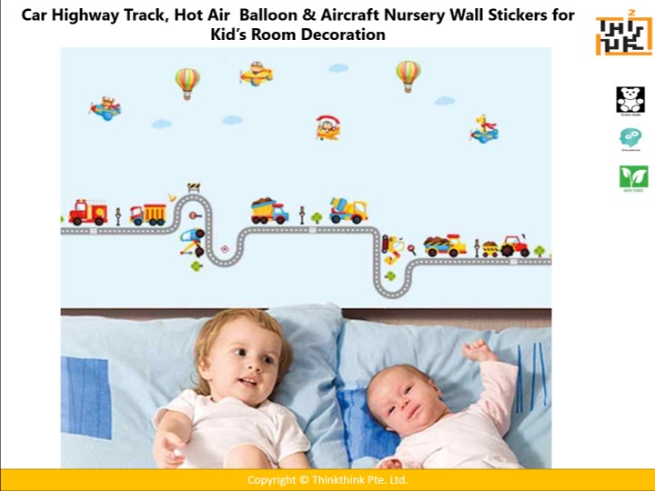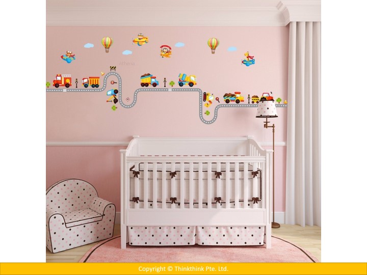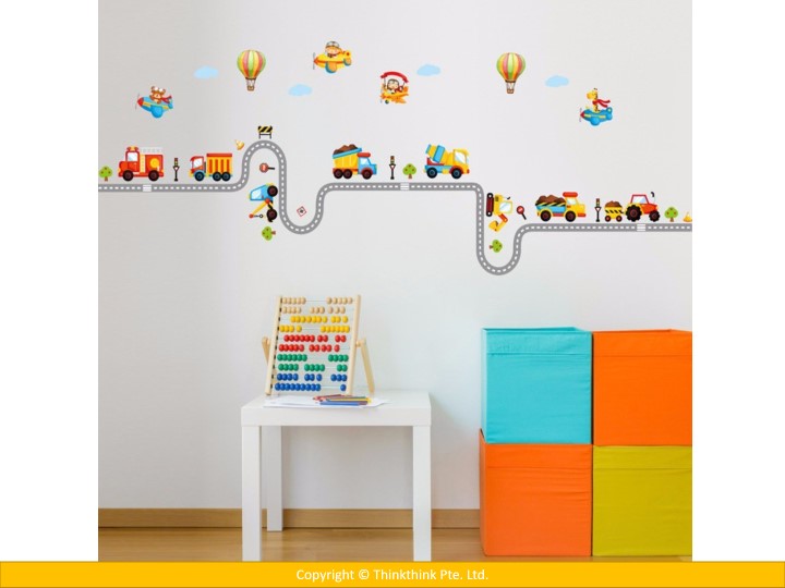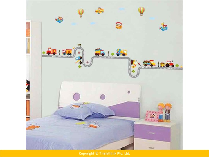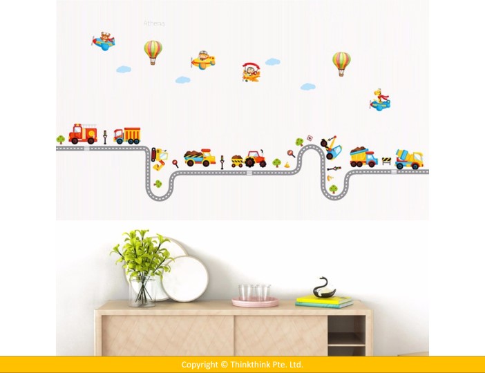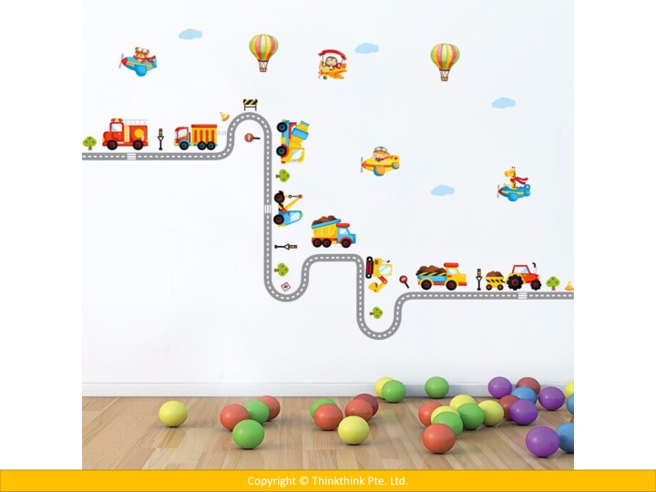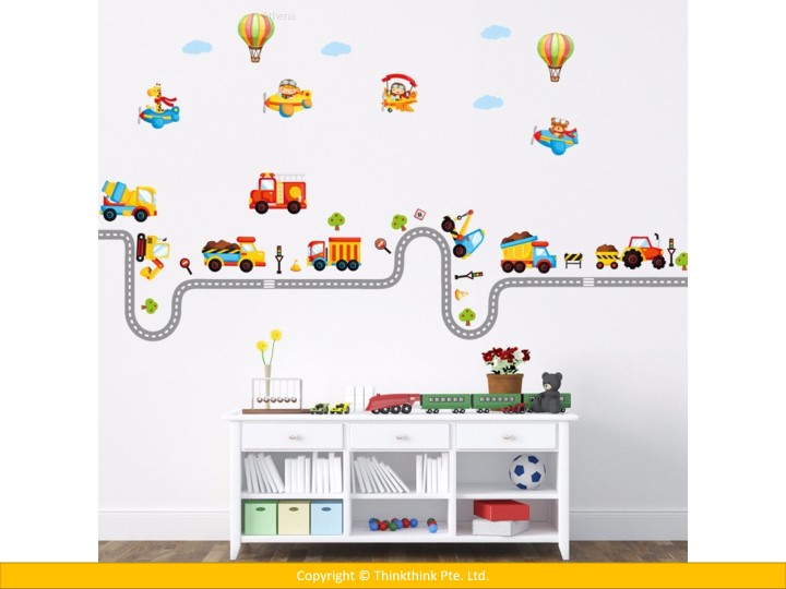 Car Highway Track, Hot Air Balloon & Aircraft Nursery Wall Stickers for Kid’s Room Decoration
