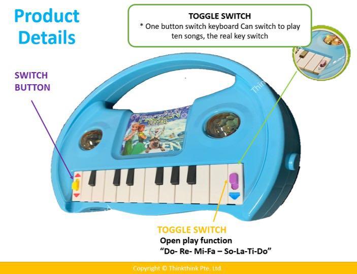 ~ Toggle Switch: A button to switch keyboard (Do-Re-Mi-Fa-So……) to play ten songs