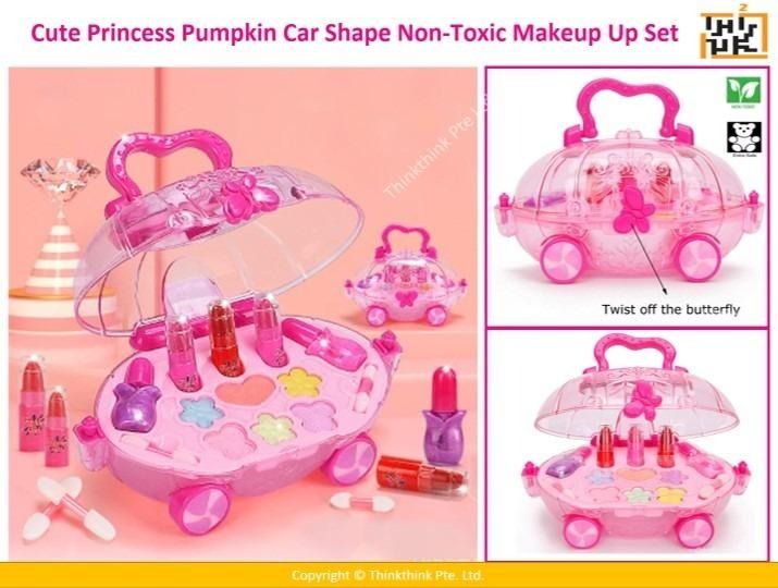 Cute Princess Pumpkin Car Shape Non-Toxic Makeup Up Set (Nail Polish, Eye Shadow, Lipsticks, Brush)