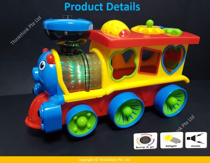 ❀ “Mini Funny train” is a fun educational toy for kids, which captivates with the presence of bright lighting effects and sounds. The engine is endowed with the ability to arbitrary movement.