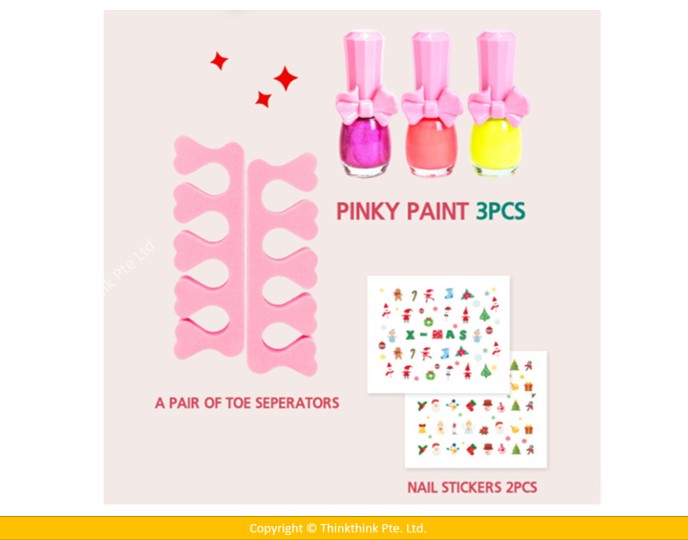 ❀ Components : 3 Pinky Paints, 1 Pair of toe separators, 2 Pinky nail stickers