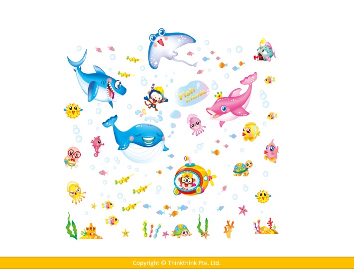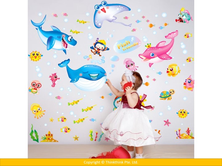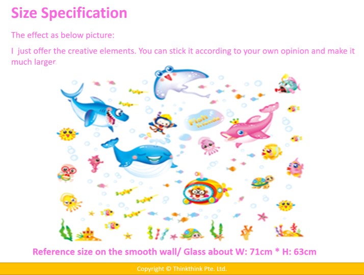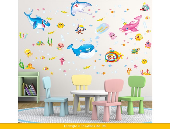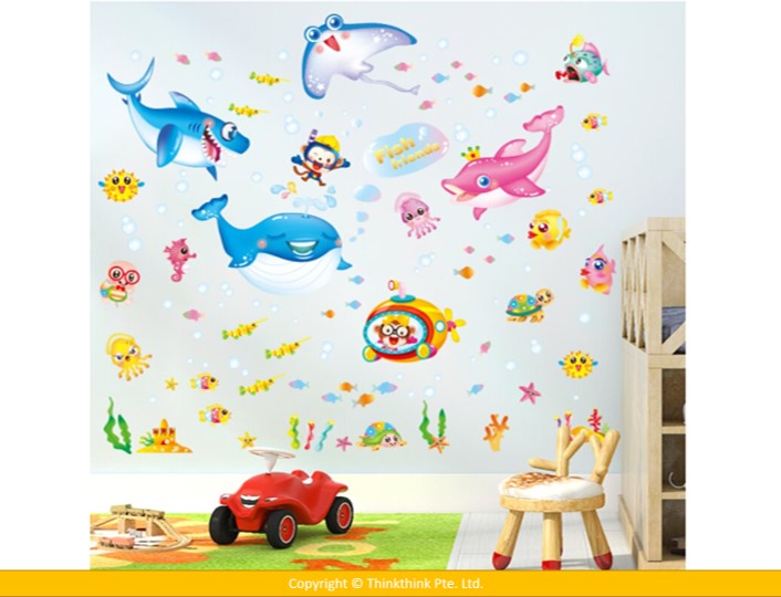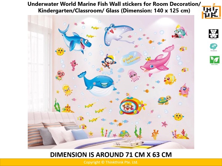 Underwater World Marine Fish Wall stickers for Room Decoration/ Kindergarten/Classroom/ Glass (Dimension: 140 x 125 cm)