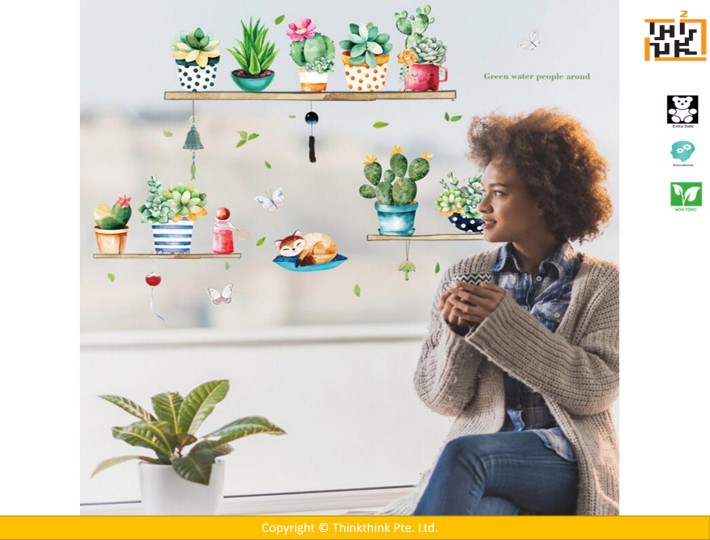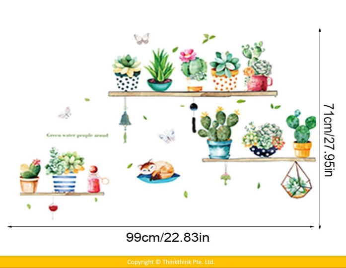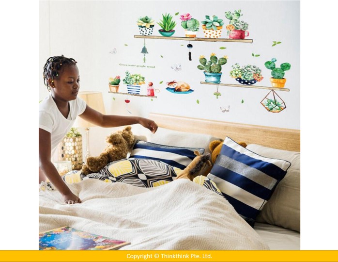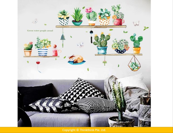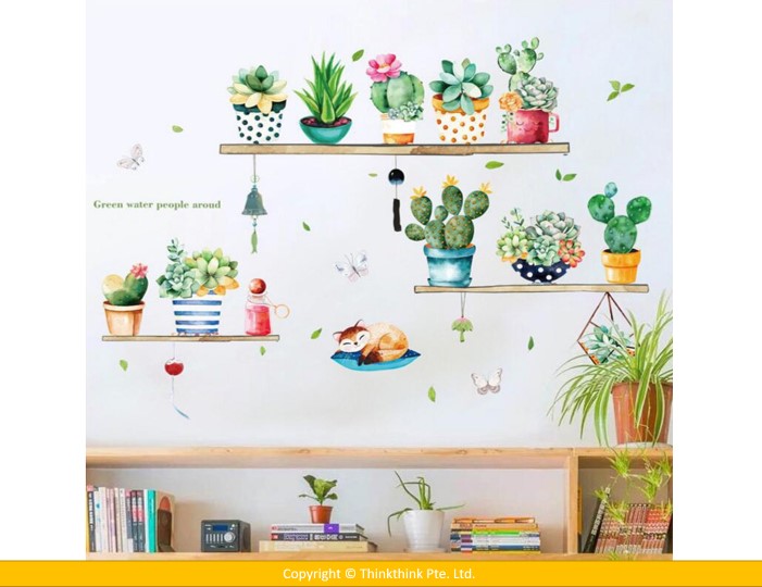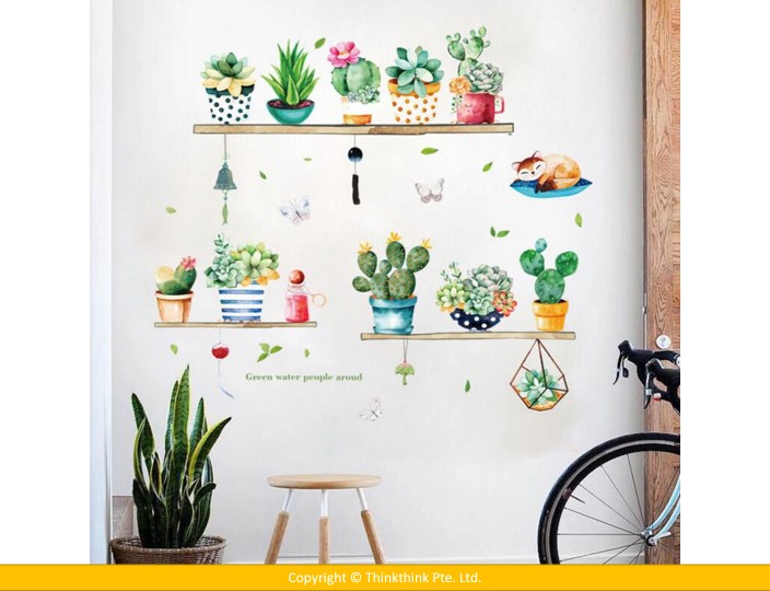 Wall Sticker Cactus Potted Living Room Bedroom Wardrobe Porch Tv Background Self-Adhesive Wall Stickers