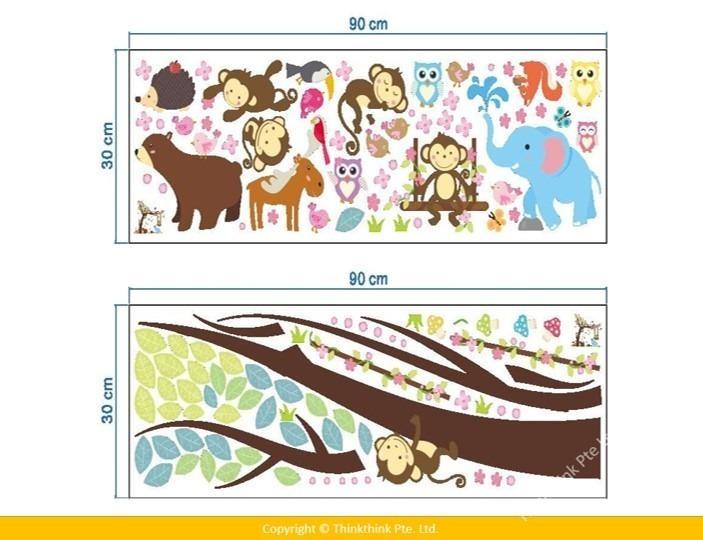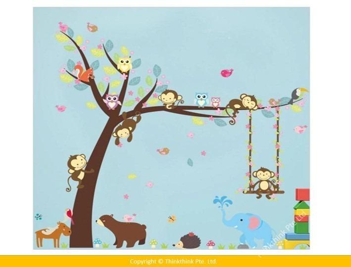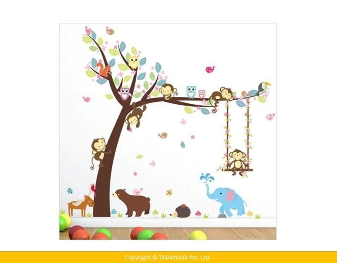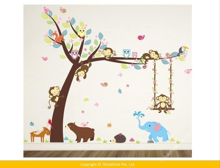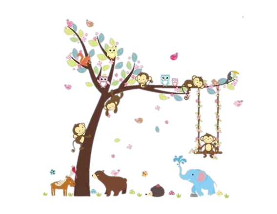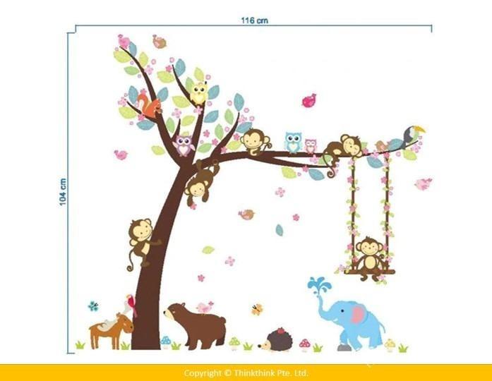 Wall Sticker for Playroom Decor Tree with Zoo Animals & Swing